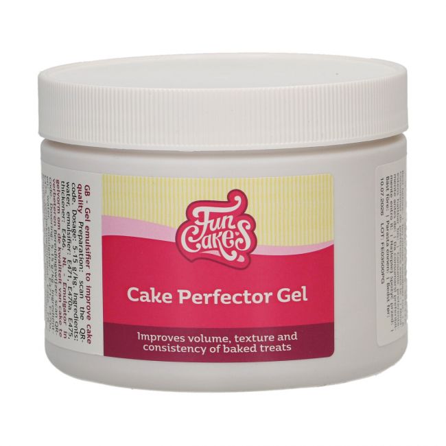 Cake Perfector Gel ist eine Mischung aus verschiedenen Emulgatoren in Form eines farblosen Gels. Da es sich um ein Gel handelt, liegt das Produkt bereits in seiner aktivierten Form vor, so dass es seine Aufgabe erfüllt, sobald Sie mit dem Mischen Ihrer Zutaten beginnen. Dies gewährleistet jedes Mal gleichbleibende Ergebnisse. Sie backen 10 Biskuitkuchen an einem Tag? Sie werden jedes Mal den gleichen Kuchen erhalten. Die Aktivierung des Geräts bedeutet auch, dass Sie Ihre Mischzeit um 50 % reduzieren können. Die gleiche Menge an Kuchen in der Hälfte der Zeit? Ist das nicht der Traum eines jeden Tortendekorateurs?