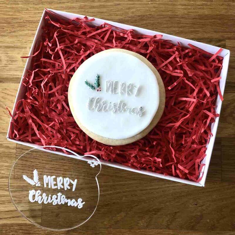 Mit diesem ‘Merry Christmas’-Cookie-Embosser können Sie schöne und wiederholbare Nachrichten für Ihre Cookies erstellen. Das prägen geht einfach und schnell! Drücken Sie einfach den Fondant Embosser in Ihr Sahnehäubchen, um diesen schönen geprägten / 3D-Effekt zu erzielen.