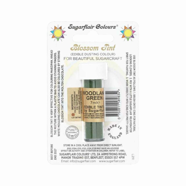 Die dunkelgrüne Puderfarbe ist geeignet für das Erstellen von wunderschönen und naturgetreuen Effekten auf zum Beispiel Blumen und Blättern als auch Figuren und Flächen. Ihre Torten mit Marzipan oder Fondant als auch Blütenpastekönnen so außergewöhnlich und individuell gestaltet werden.