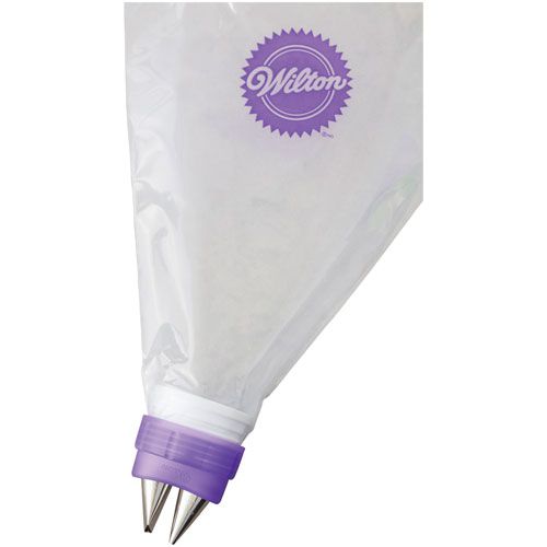 Mit dem Wilton Due Tip Coupler Set können Sie mit Hilfe von zwei Wilton Spritztüllen gleichzeitig leicht einzigartige Texturen und Designs auf Torten und andere Leckereien anbringen. Das Set ist für jeden vom Anfänger bis zum Experten geeignet.