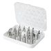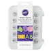 Set enthält: 26 Dekorationsspitzen (Round 2, 4, 7, 10; Star 13, 16, 17, 18, 30, 199; Leaf 65, 66, 67, 352; Petal and Drop Flower 61, 97, 101, 102, 103, 104, 106, 107, 225; Specialty 46, 47, 233), plus eine Standardkupplung, einen Blumennagel (3 cm) und ein Tip Saver Case.
